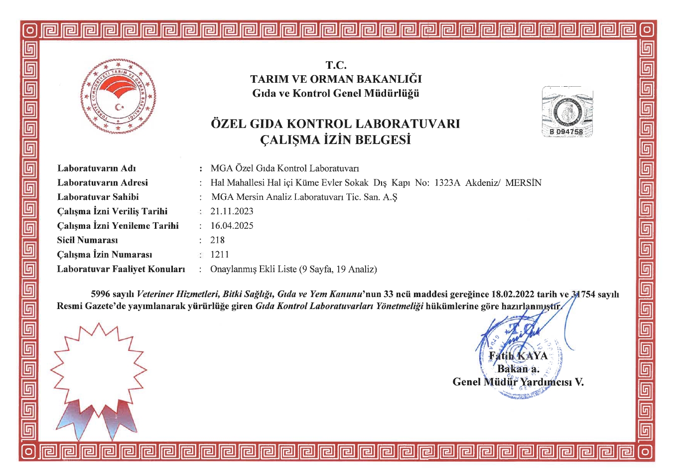 MGA Akreditasyon Sertifikası detayları